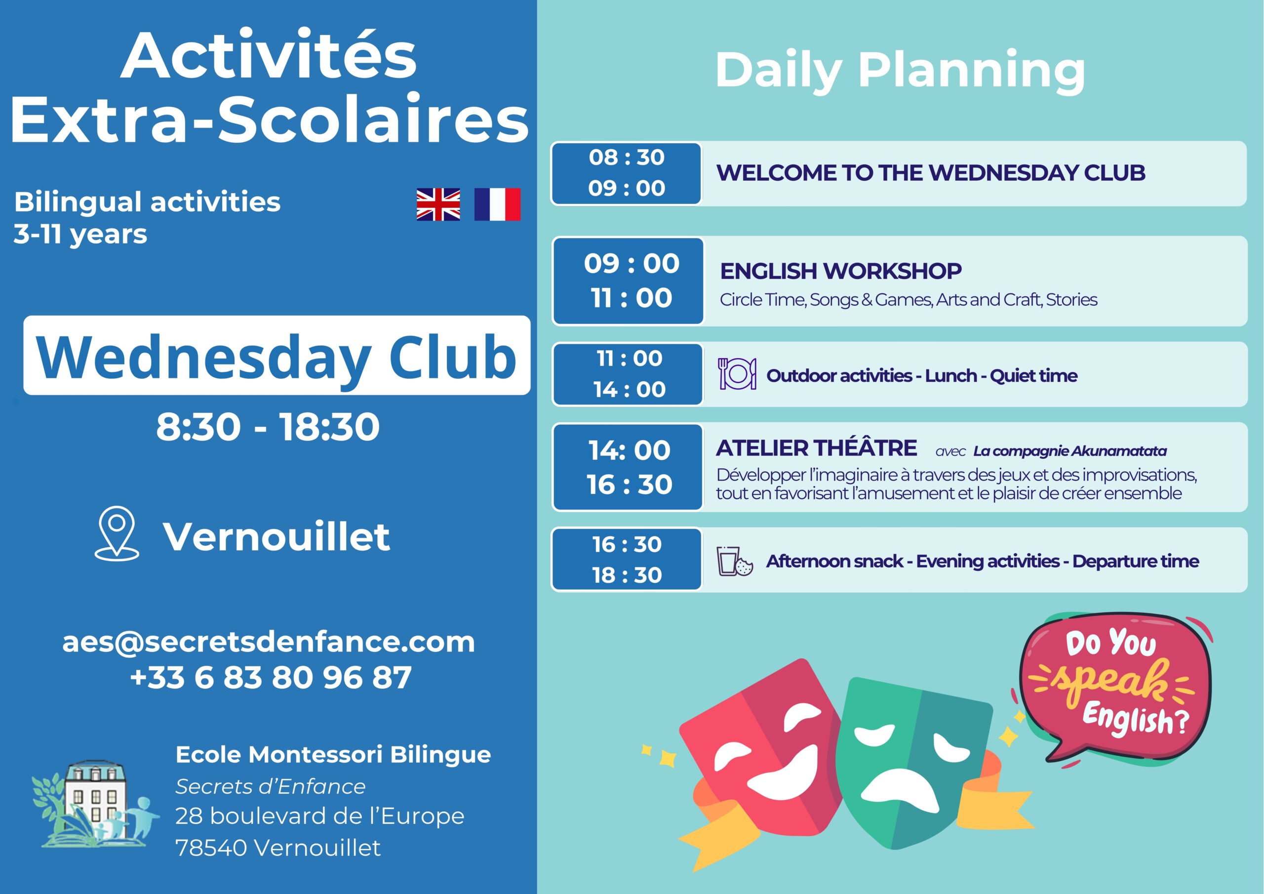 After-school : lundi, mardi, jeudi et vendredi de 16h30 à 18h30